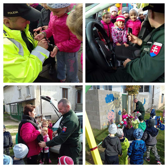 Deti na chvíľu takmer stratili dych, keď videli ako k nám do dvora materskej školy jedno slnečné predpoludnie prichádza policajné auto so zapnutou sirénou. No prvotné rozpaky sa rozplynuli, keď z neho vystúpili usmiaty ujovia policajti, ktorí deti postupne oboznámili s povinnou výbavou mužov zákona.